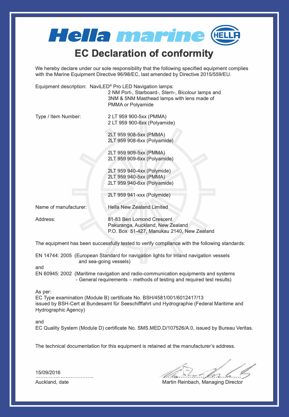 Wheelmark (MED), BSH, IMO Col Reg 72, USCG, ABYC A-16, Maritime NZ