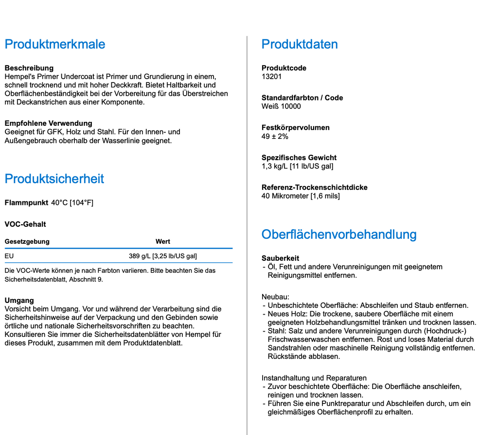 Geeignet für GFK, Holz und Stahl. Für den Innen- und Außenbereich oberhalb der Wasserlinie geeignet.