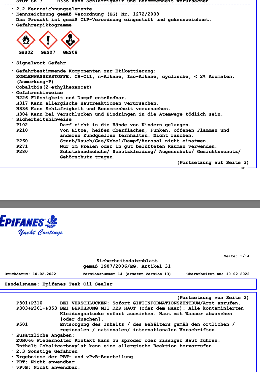 Epifanes Teak Oil Sealer, auf Basis von Alkydharz und Leinöl, ist ein matt auftrocknendes, stark einziehendes Imprägnieröl, das für Monate ein erneutes Ergrauen und Verschmutzen des Teakholzes verhindert. Verarbeitung: Der Untergrund muss sauber, trocken und fettfrei sein. Mit breitem Pinsel oder Lappen nass-in-nass auftragen bis Sättigung eingetreten ist. Pfützenbildung ist zu vermeiden. Überschüssigen Teak Oil Sealer mit sauberem, fusselfreien Lappen entfernen.