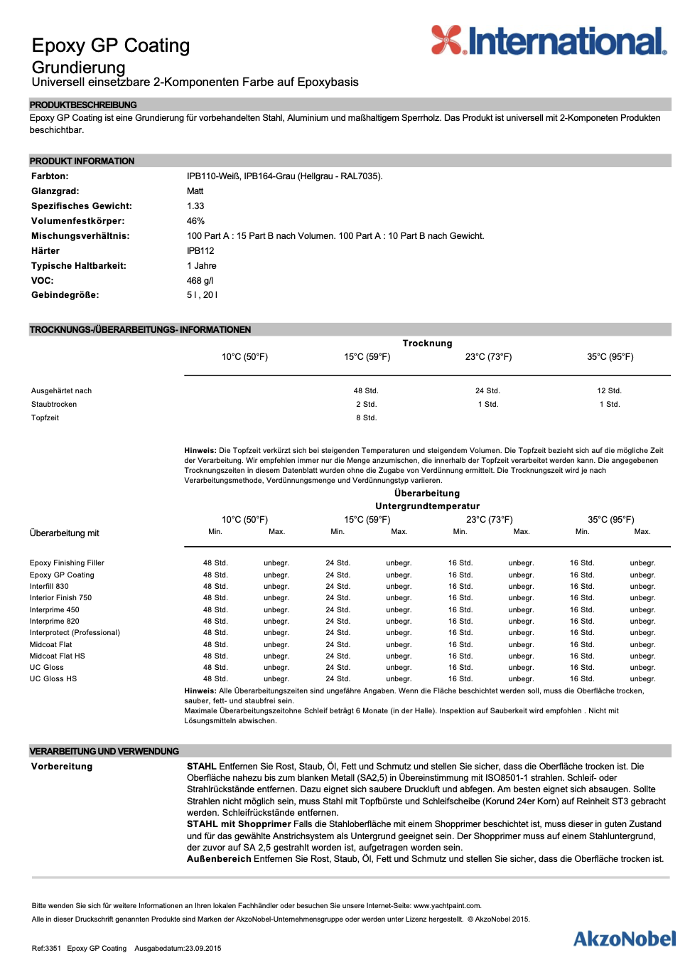 Grundierung für vorbehandelten Stahl, Aluminium, maßhaltigen Sperrholz. Das Produkt ist universell mit 2Komponenten Produkten beschichtbar.
