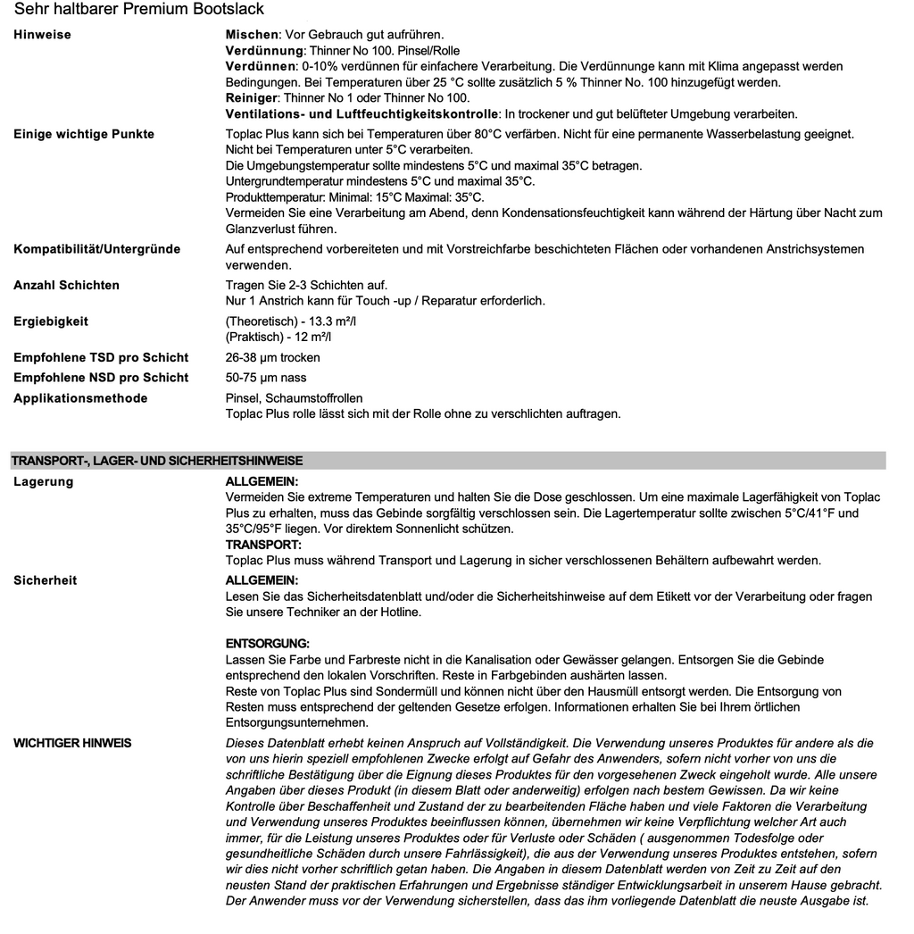 Mit einem satten Farbton, der auch im Laufe der Zeit seinen Glanz beibehält, ist Toplac die Lösung, der man vertraut, wenn ein hochwertiger Decklack benötigt wird.