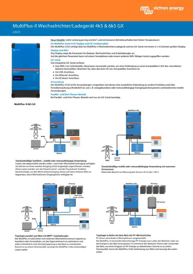 MultiPlus-II Wechselrichter/Ladegerät 4k5 & 6k5 GX