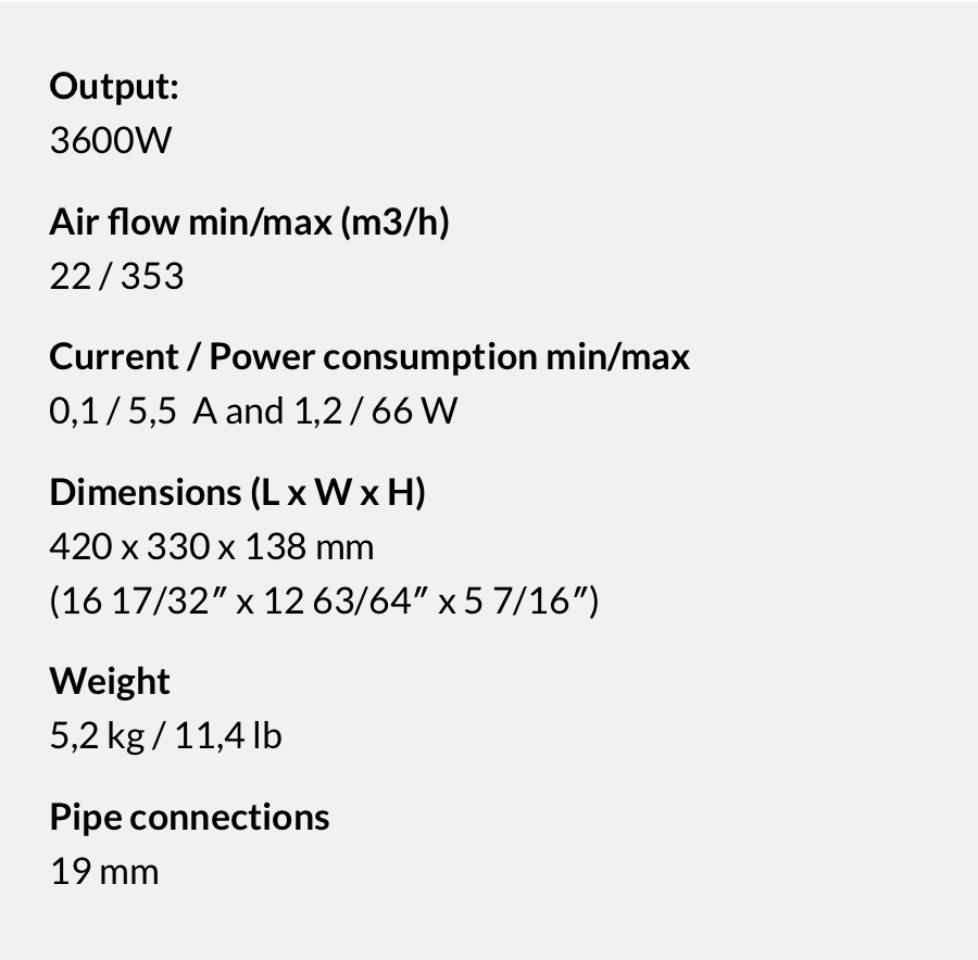 Dimensions (L x W x H):420 x 330 x 138 mm
